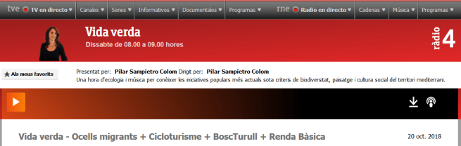 Entrevista sobre renda bàsica i Libertad incondicional a Vida verda, Ràdio 4 (RNE), 20/10/18 (a partir del minut 40).
