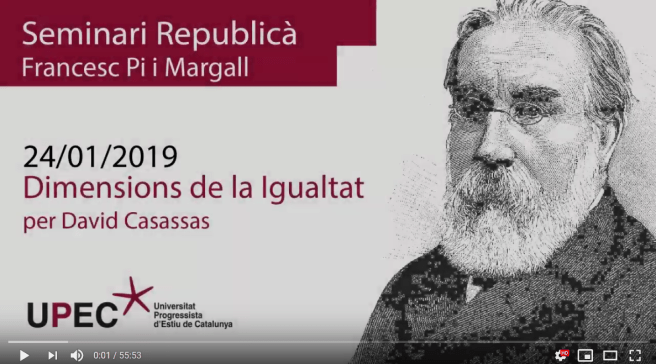 «Dimensions de la igualtat». Seminari Republicà Francesc Pi i Margall (Universitat Progressista d’Estiu de Catalunya, UPEC), Barcelona, 24/01/19.