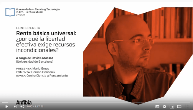 «Renta básica universal: ¿por qué la libertad efectiva exige recursos incondicionales?» Programa Lectura Mundi, Centro Ciencia y Pensamiento (Universidad Nacional de San Martín, Buenos Aires), con la colaboración de la Revista Anfibia, 01/06/20.